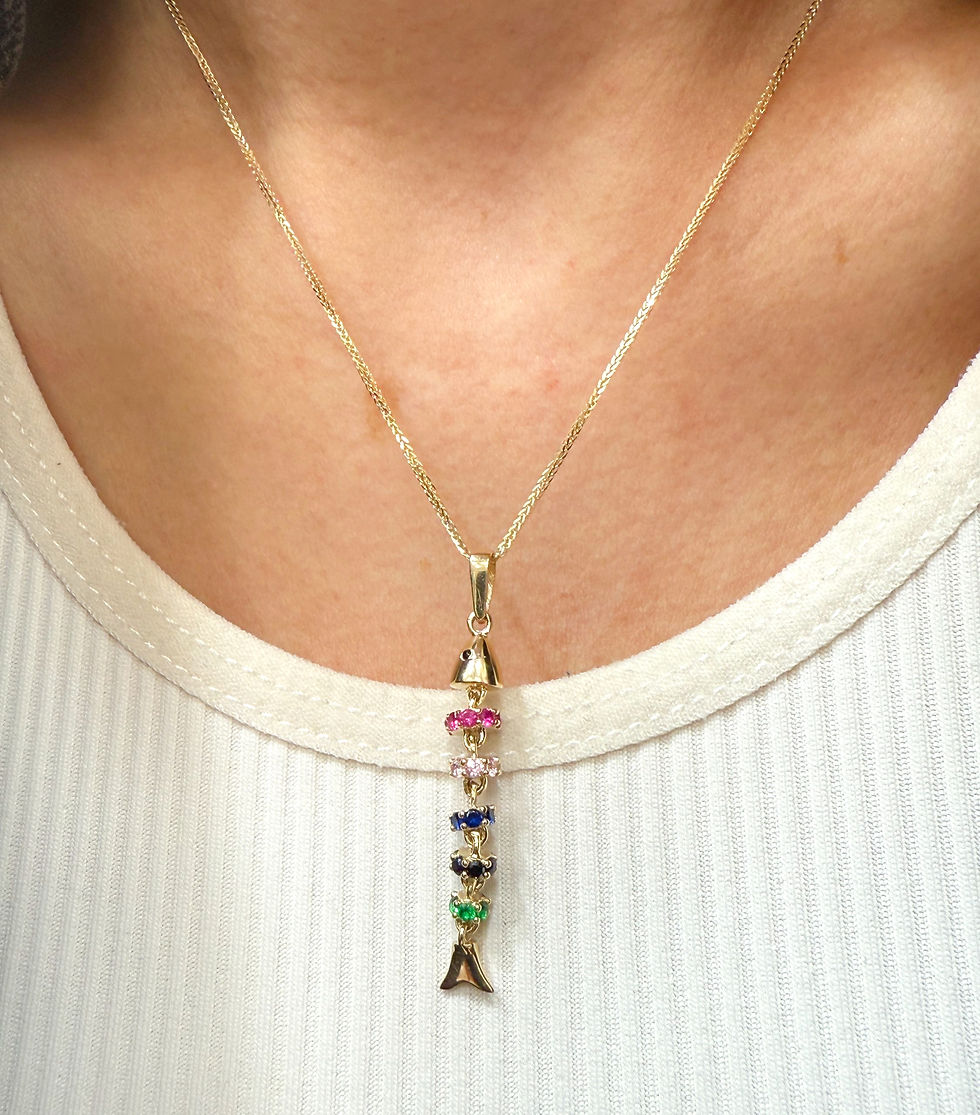 שרשרת שפיץ משובצת זרקון קיימת עם שיבוץ לבן/שחור.